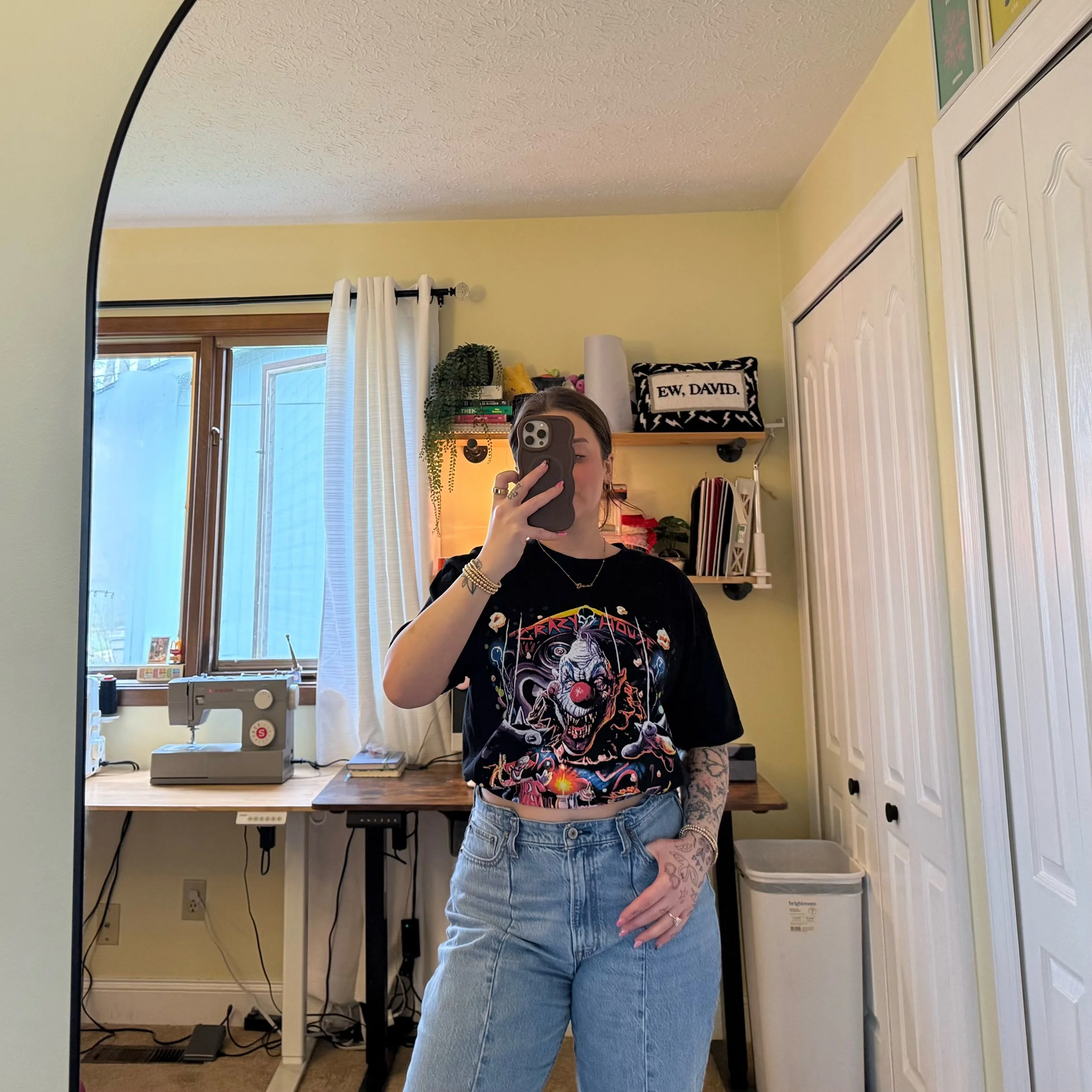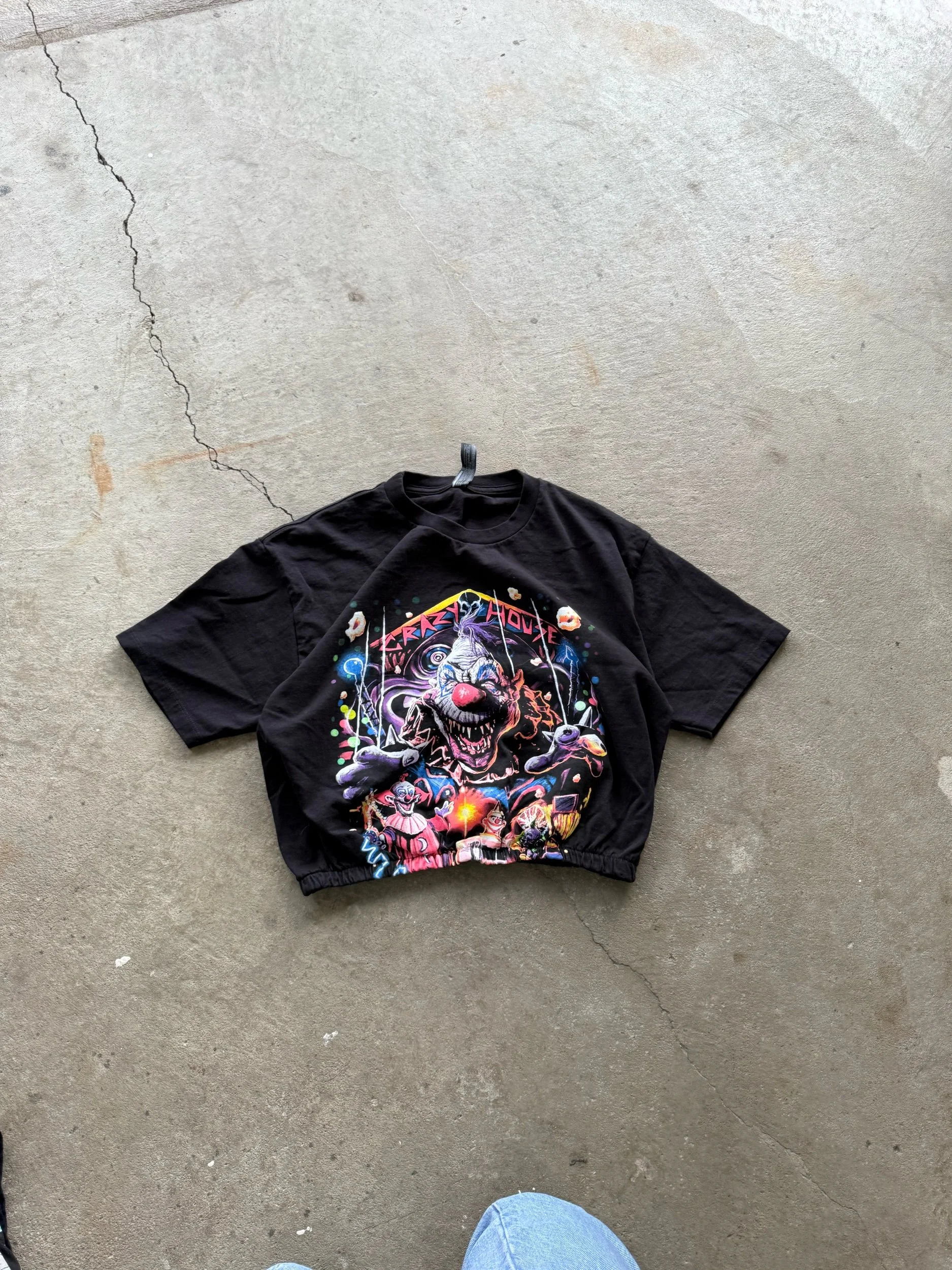 Image 1 of 2 Image 2 of 2 KILLER KLOWNS CRAZY HOUSE tee w/ elastic waistband [XS-L] $70.00 SOLD MODELED ON A SIZE MEDIUMelastic waistband 30” - 46”LENGTH 21”comes washed. NO RETURNS, REFUNDS OR EXCHANGES Get notified by email when this product is in stock. SOLD Added! MODELED ON A SIZE MEDIUMelastic waistband 30” - 46”LENGTH 21”comes washed. NO RETURNS, REFUNDS OR EXCHANGES TIP THE CREATOR $5.00 Add Added! Reviews Reviewer Name Review Date Star Rating Description Posted on Etsy Product Show More
