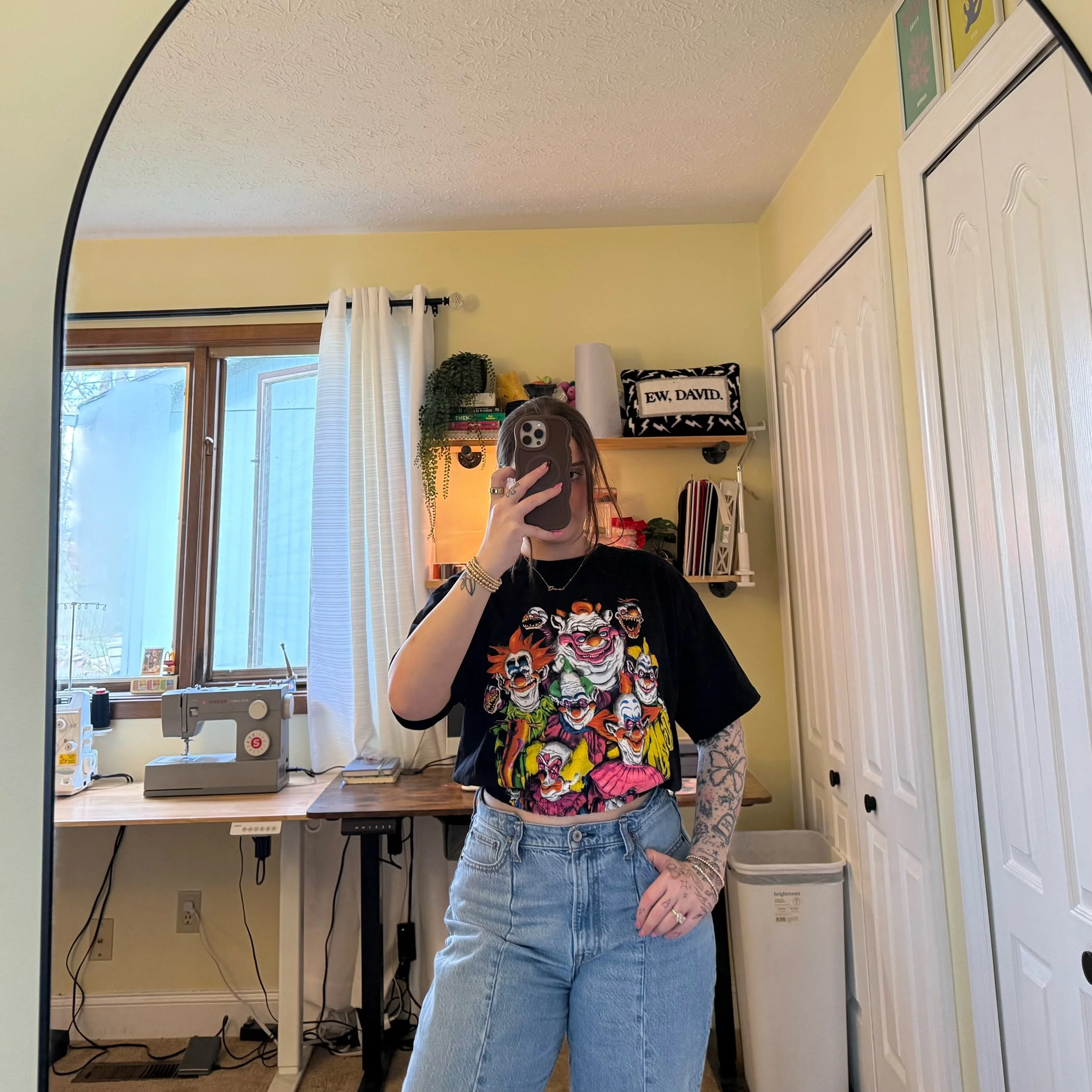 Image 1 of 2 Image 2 of 2 KILLER KLOWNS tee w/ elastic waistband [XS-L] $70.00 1 available MODELED ON A SIZE MEDIUMelastic waistband 29” - 50”LENGTH 20.5”comes washed. NO RETURNS, REFUNDS OR EXCHANGES Get notified by email when this product is in stock. Add To Cart Added! MODELED ON A SIZE MEDIUMelastic waistband 29” - 50”LENGTH 20.5”comes washed. NO RETURNS, REFUNDS OR EXCHANGES TIP THE CREATOR $5.00 Add Added! Reviews Reviewer Name Review Date Star Rating Description Posted on Etsy Product Show More