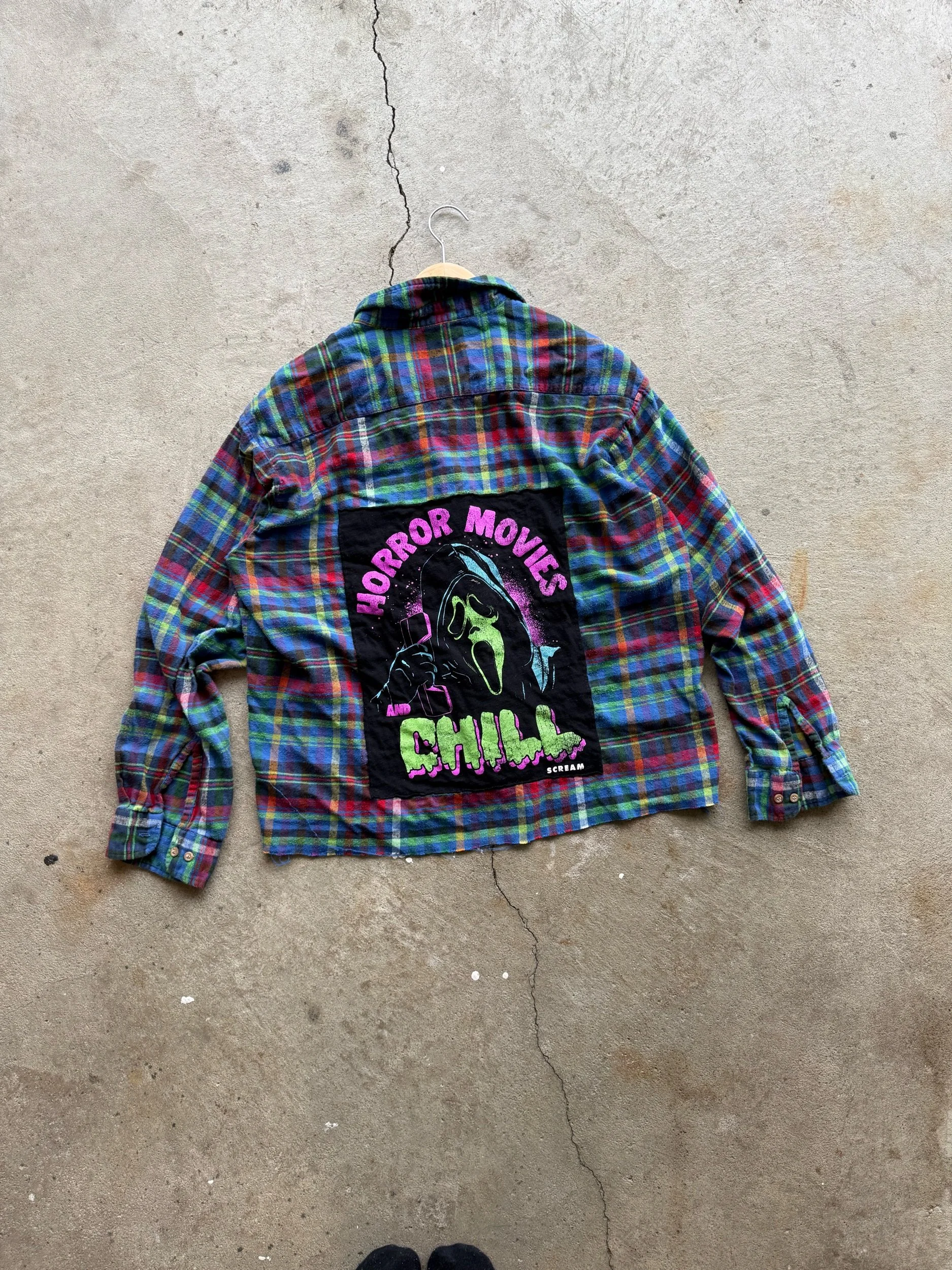 Image 1 of 1 ONE OF ONE HORROR MOVIES AND CHILL FLANNEL BACK - XL $150.00 LENGTH 27”FLANNEL EDGES WILL FRAYcomes washed. NO RETURNS, REFUNDS OR EXCHANGES Get notified by email when this product is in stock. Add To Cart Added! LENGTH 27”FLANNEL EDGES WILL FRAYcomes washed. NO RETURNS, REFUNDS OR EXCHANGES TIP THE CREATOR $5.00 Add To Cart Reviews Reviewer Name Review Date Star Rating Description Posted on Etsy Product Show More